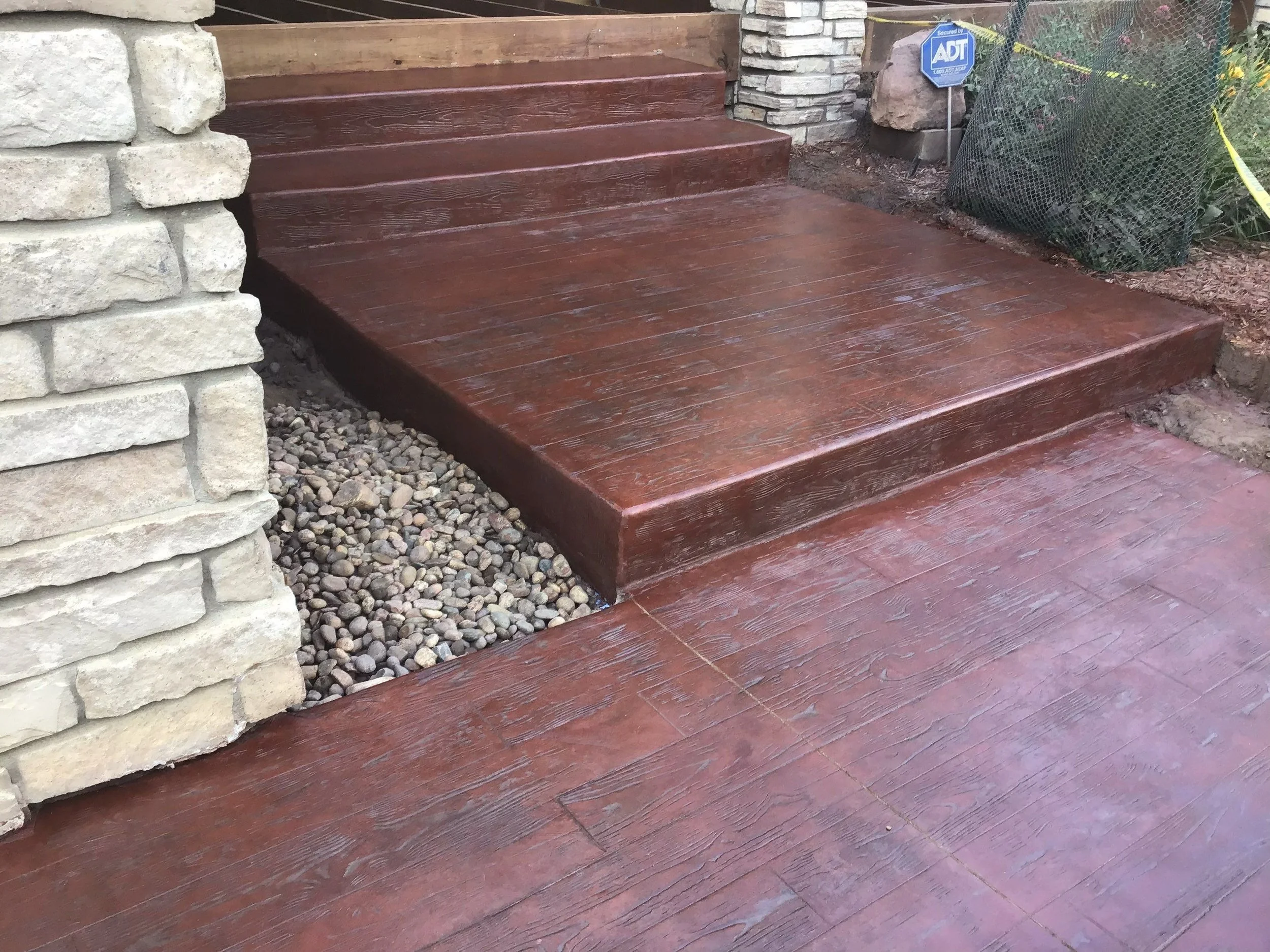 Stamped concrete mimics materials like brick or stone by imprinting patterns onto freshly poured concrete for decorative flooring.